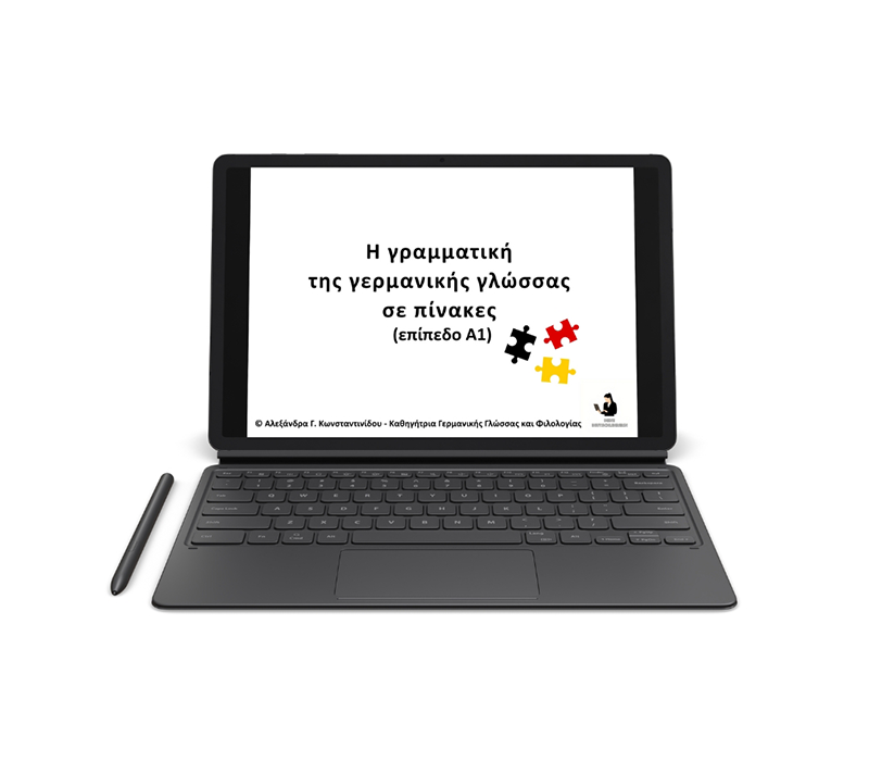 Στο eBook θα βρεις όλη τη γραμματική του Α1 σε πινακάκια μαζί με χρήσιμες προτάσεις για την καθημερινότητά σου στη Γερμανία!